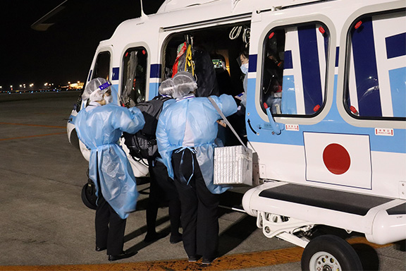 傷病者を長崎空港へ搬送し、午後9時42分、救急隊へ引継ぎ、長崎医療センターへ搬送されました。